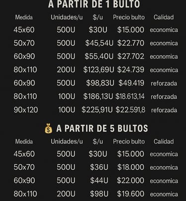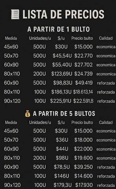 Sin intermediarios: mejor costo desde el primer bulto. (A partir 500 Bosas $15.000) ES decir $30 pesos cada Bolsa